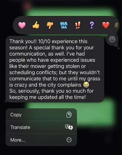EXCELLENT and prompt communication, fair pricing, and we were very pleased with Brandon. Making a switch to a new place is hard, but he made it seamless and always made sure everything looked pristine. Always cleaned up any mess. He is honest and upfront and that is always appreciated.